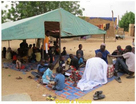 Vieille de 40 ans (1961/ 2001), l’école de Touldé n’a pas beaucoup évolué. Elle est passée d’un hangar à des salles en terre et bois et tôles de zinc dans les années 1970 et 80 et à un établissement construit en dur en 1981, mais très peu équipé: